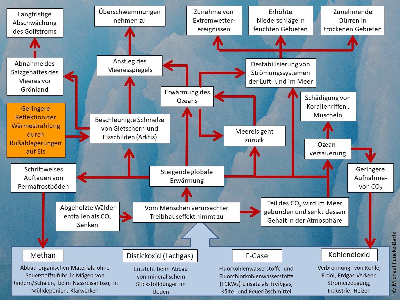 Kippelemente im Erdsystem . Bei diesen Bestandteilen geht die Wissenschaft davon aus, dass die globalen Klimaveränderungen dort sich selbst verstärkende und nicht mehr umkehrbare Prozesse auslösen können, die das Klima weltweit grundlegend verändern. Um derartige Risiken zu reduzieren, zählt jedes Zehntelgrad der Erderwärmung, das durch entsprechende Minderungsmaßnahmen vermieden wird. Welche Rolle die Schifffahrt und auch Kreuzfahrten spielen, erläutert ein Beitrag der